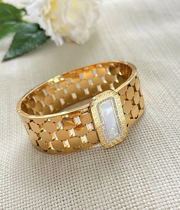 Greek Key Openable Bracelet for Girls & Women – White Center, Stainless Steel Jewelry